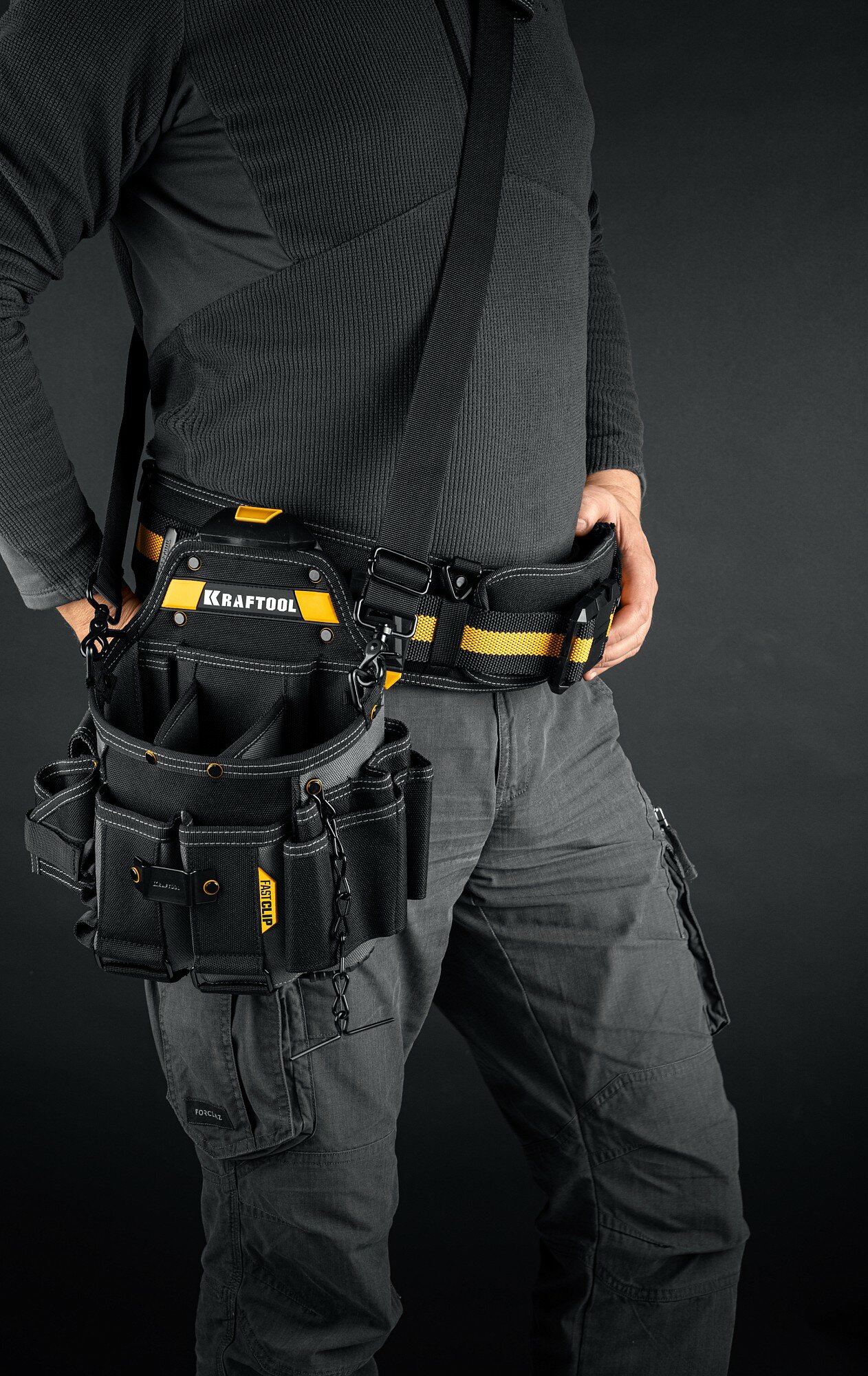 Поясная сумка KRAFTOOL с быстросъёмным креплением FastClip, 15 карманов и петель 38771