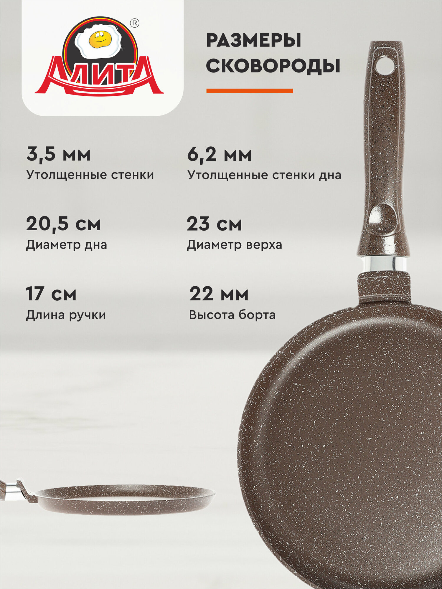 Сковорода блинная 23 см антипригарная литая, для блинов, Браун