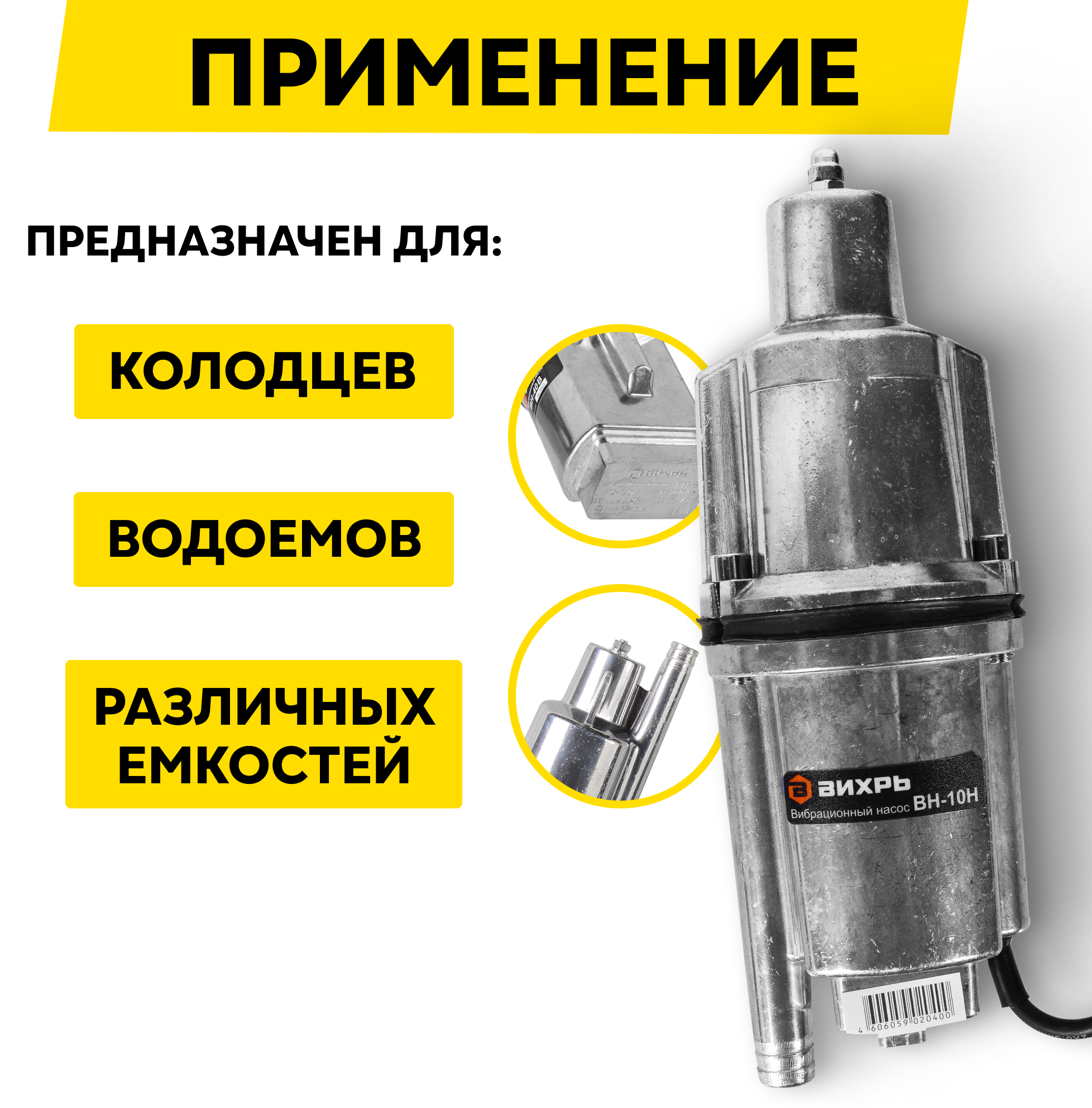 Насос вибрационный колодезный ВН-10Н Вихрь нижний забор ,10м кабель погружной 68/8/5