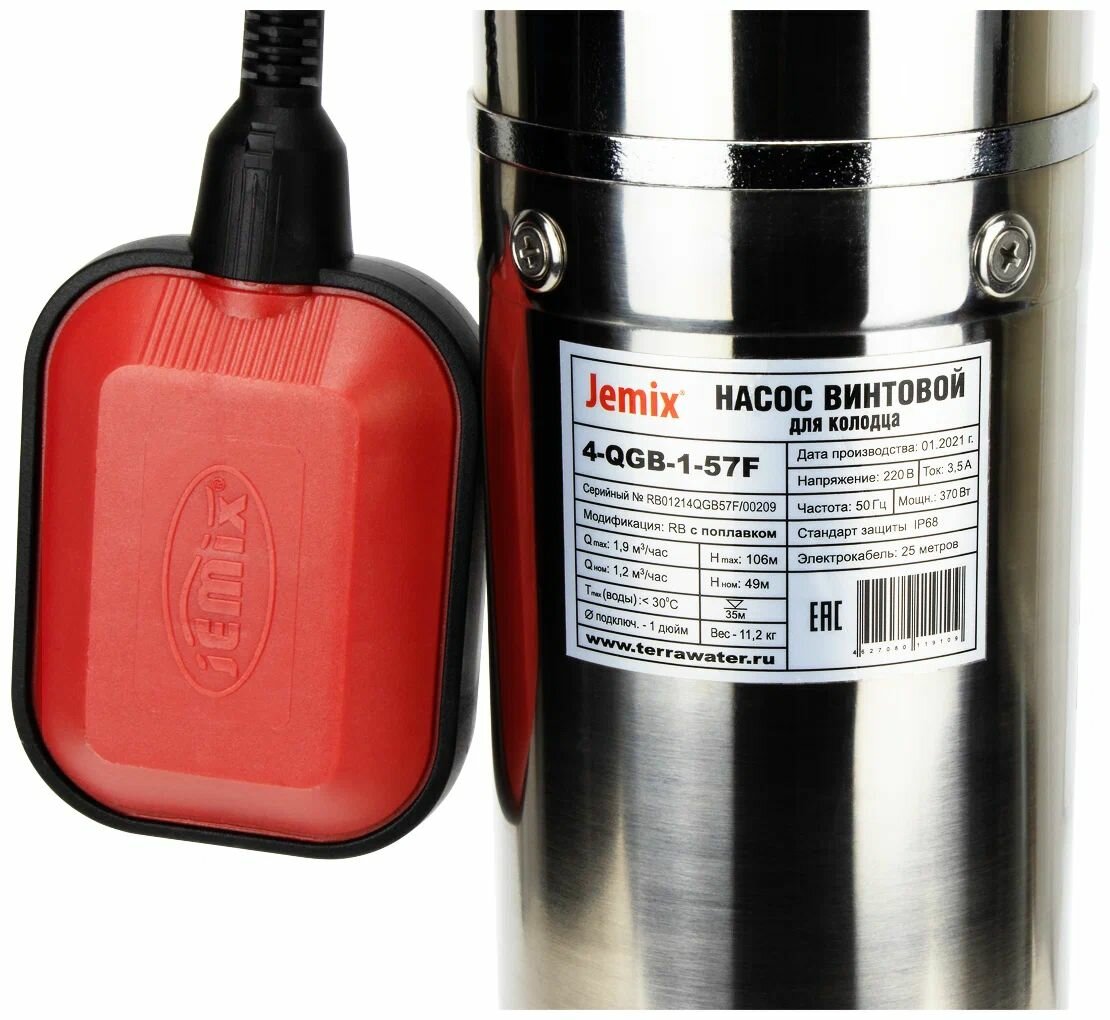 Насос погружной винтовой для колодца с поплавком Jemix 4-QGB-1-57F