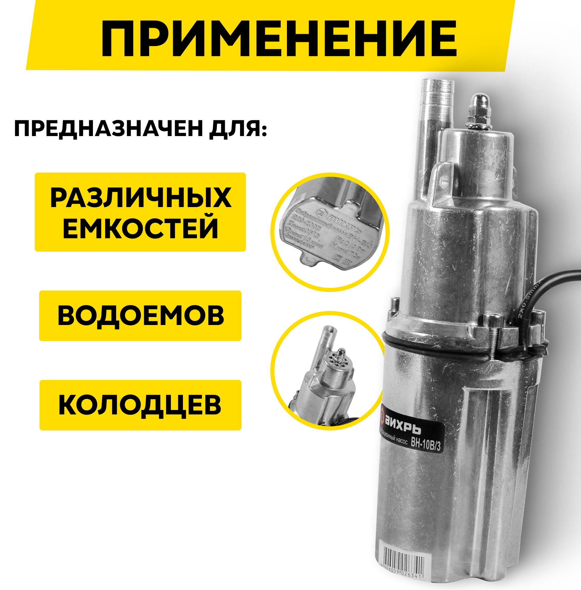 Вибрационный насос ВН-10В/3 Вихрь, высота подъема 72м, нижний забор воды, кабель 15м интересное: