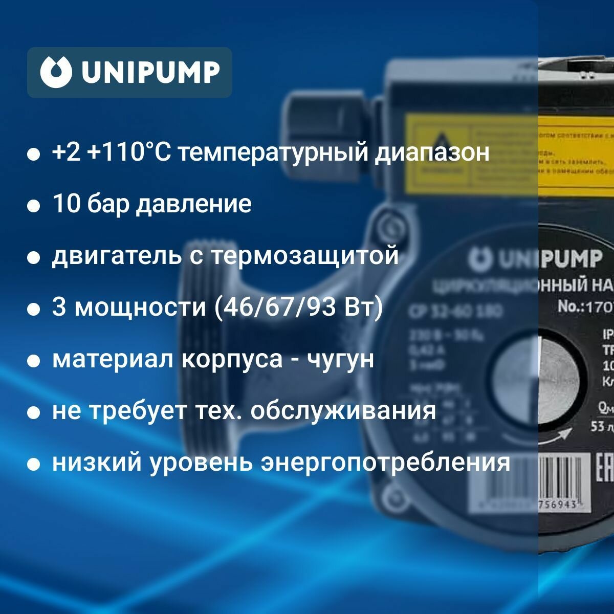 СохранитьНасос циркуляционный для отопления Unipump СР 32-60 180 интересное: