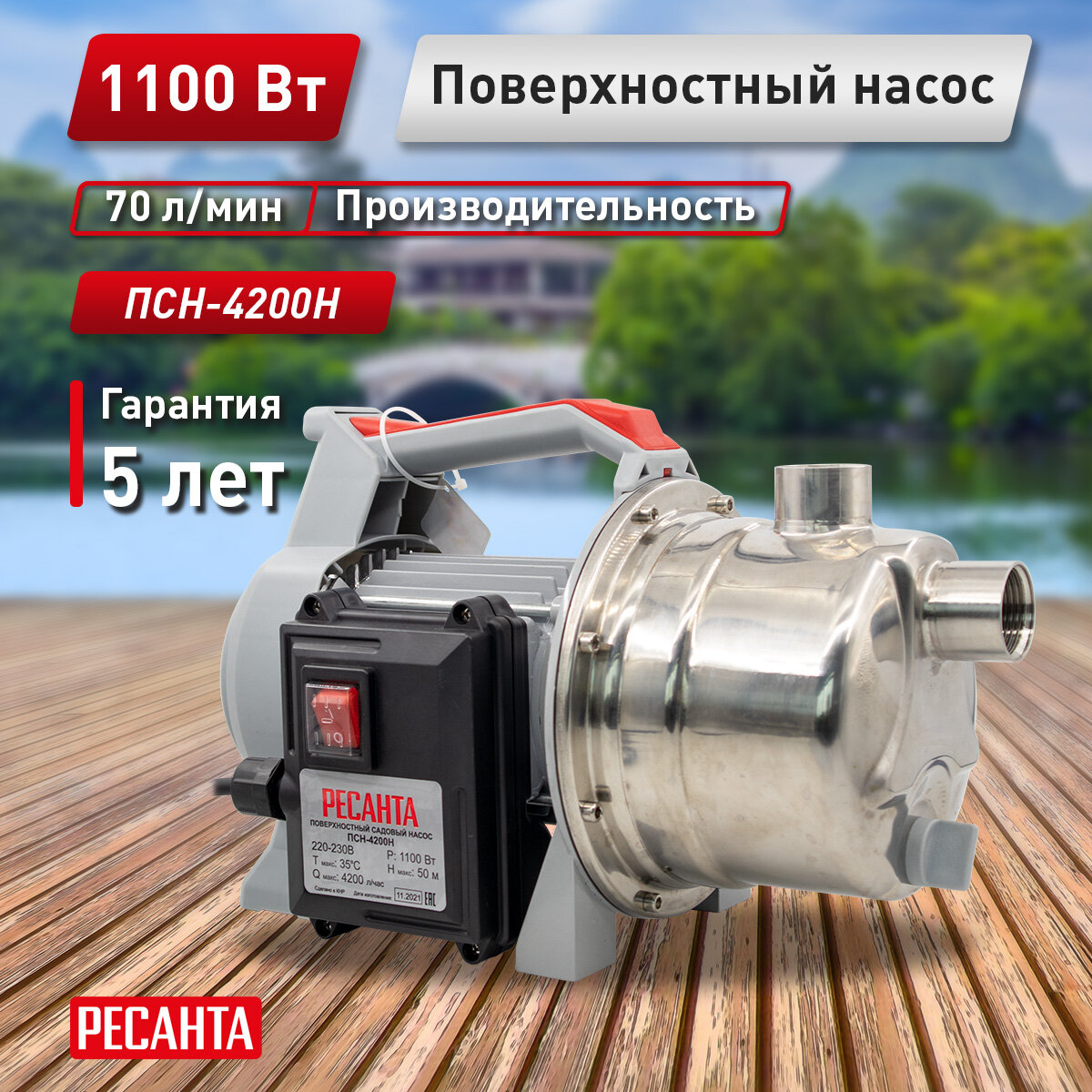 Купить Поверхностный насос Ресанта ПСН-4200Н, 1100 Вт, высота подъема – 50 м, 70 л/мин, G1
