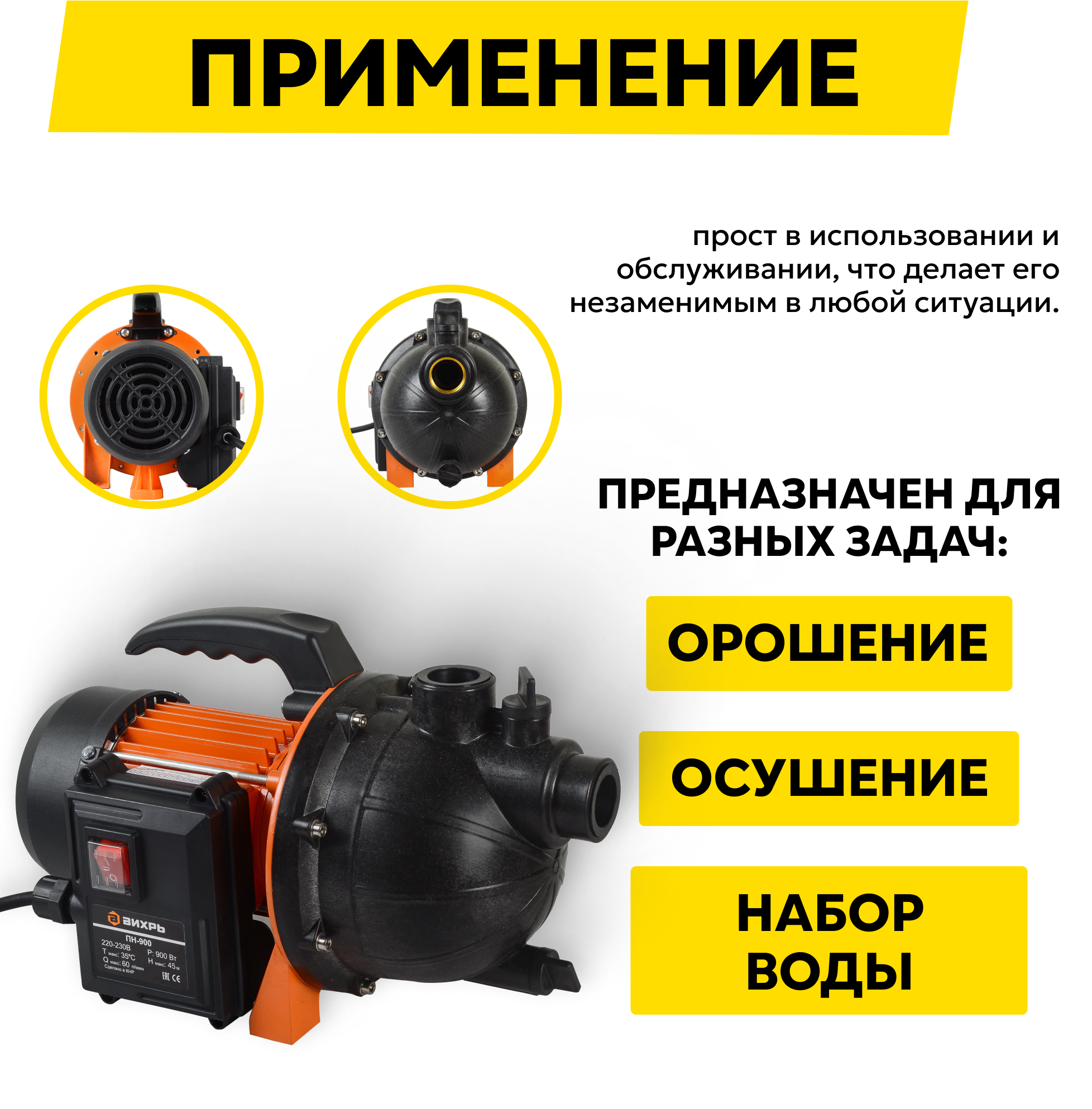 Поверхностный насос вихрь ПН-900, 900 Вт, высота подъема – 45 м, 60 л/мин интересное:
