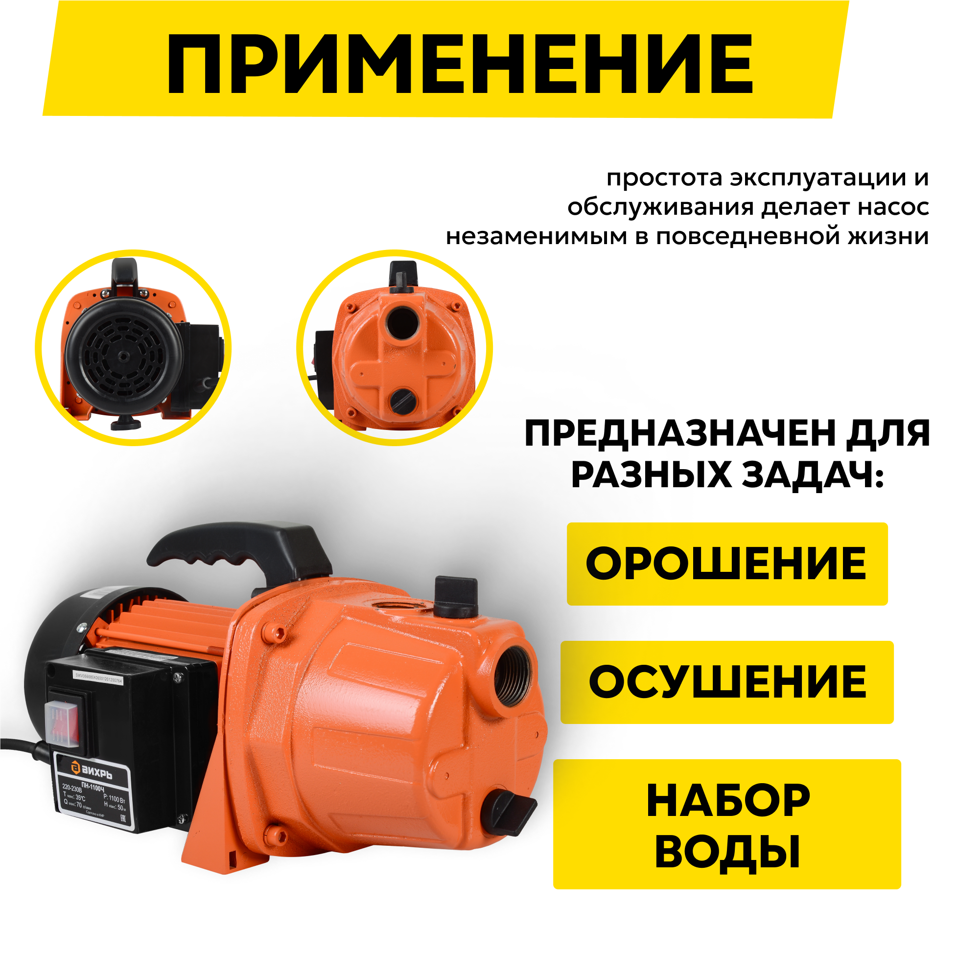 СохранитьПоверхностный насос вихрь ПН-1100Ч, 1100 Вт, высота подъема – 50 м, 70 л/мин, глубина всасывания – 9 м интересное: