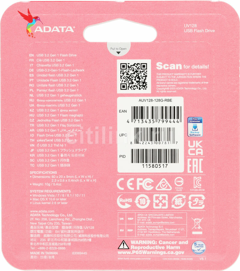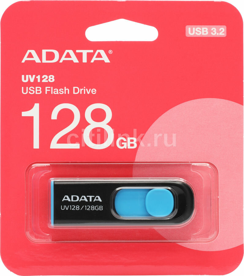 ADATA Накопитель USB flash 128ГБ ADATA FlashDrive UV128 AUV128-128G-RBE, черно-синий (USB3.2) (ret)