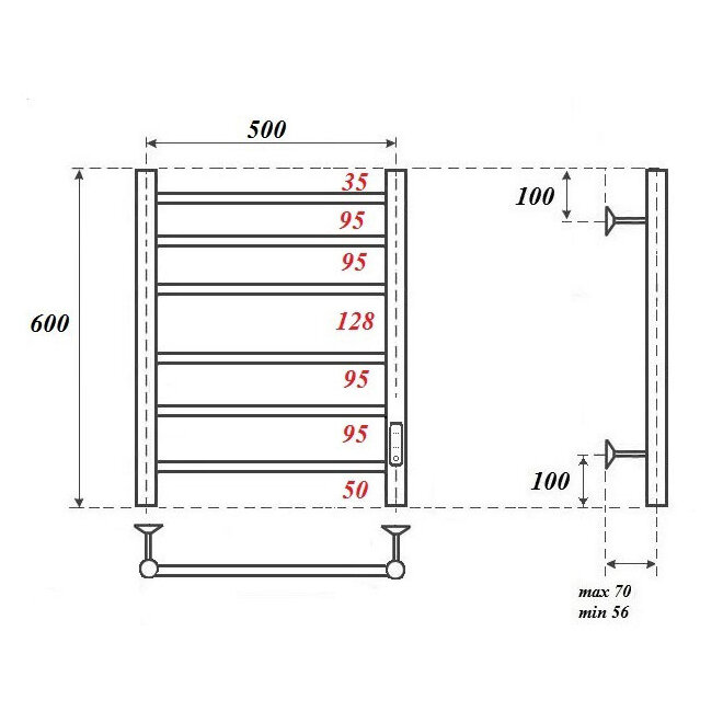 Полотенцесушитель электрический 600x532 диммер справа Point Аврора П6 PN10856BR