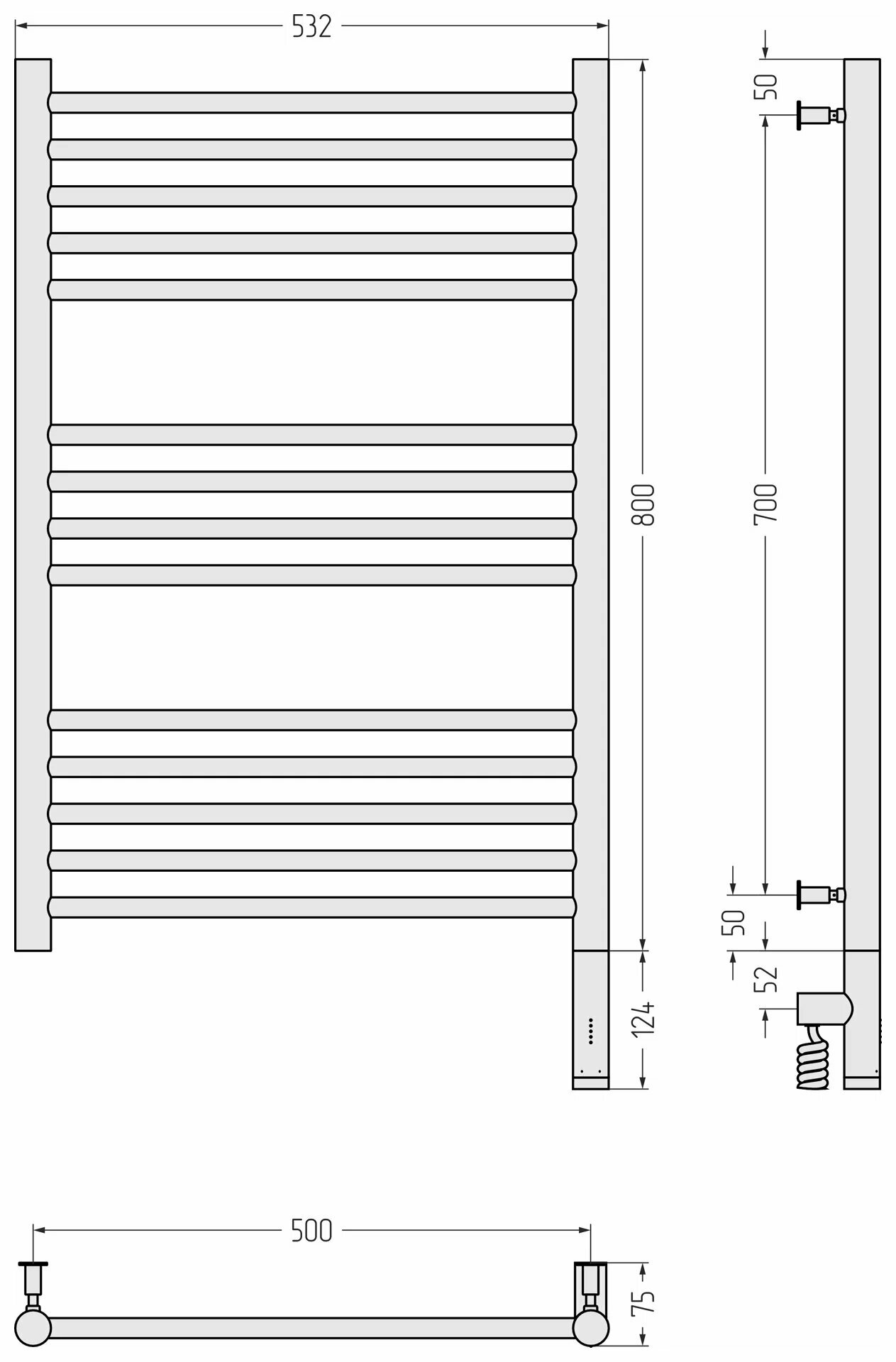 Полотенцесушитель электрический "богема 3.0" прямая 800х500 / МЭМ правый (Без покрытия)