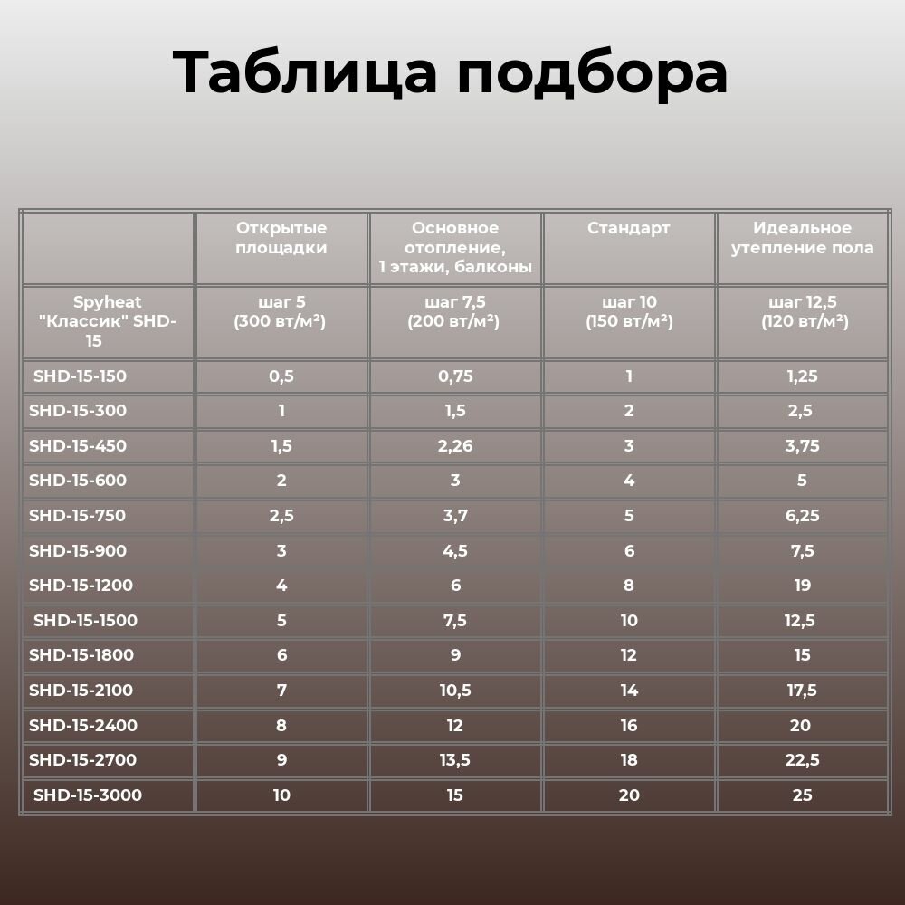 Теплый пол SpyHeat SHD-15-1500, в стяжку, 9,4-12,5 м², 1500 Вт, 100 метров, двухжильный кабель.