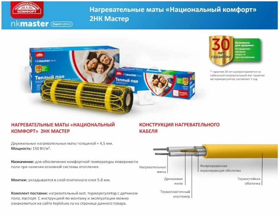 Мат нагревательный "Национальный комфорт" 2НК 225 Вт/1,5 кв.м Мастер с терморегулятором