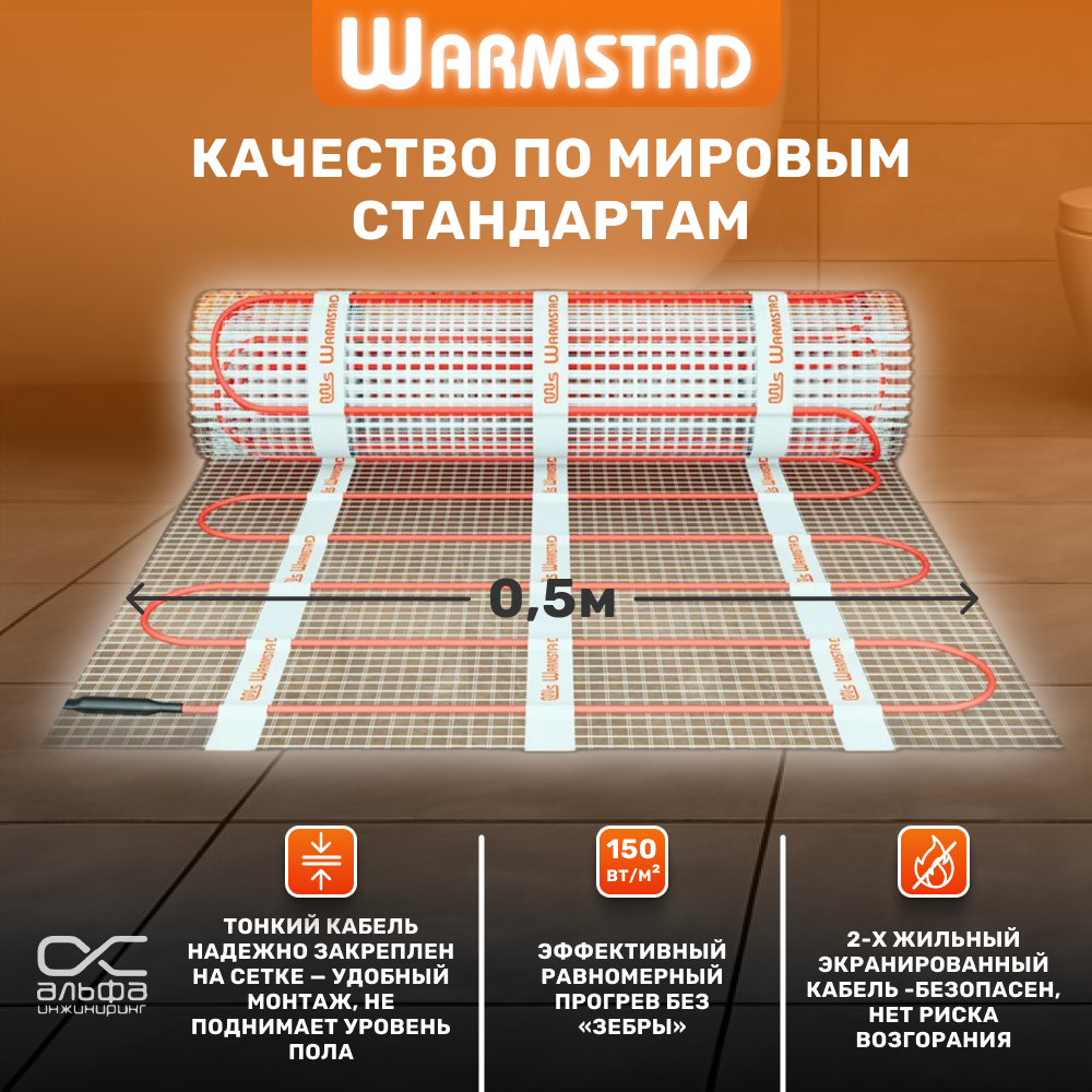 Теплый пол электрический под плитку Warmstad WSM 1530 Вт/10,2 кв.м