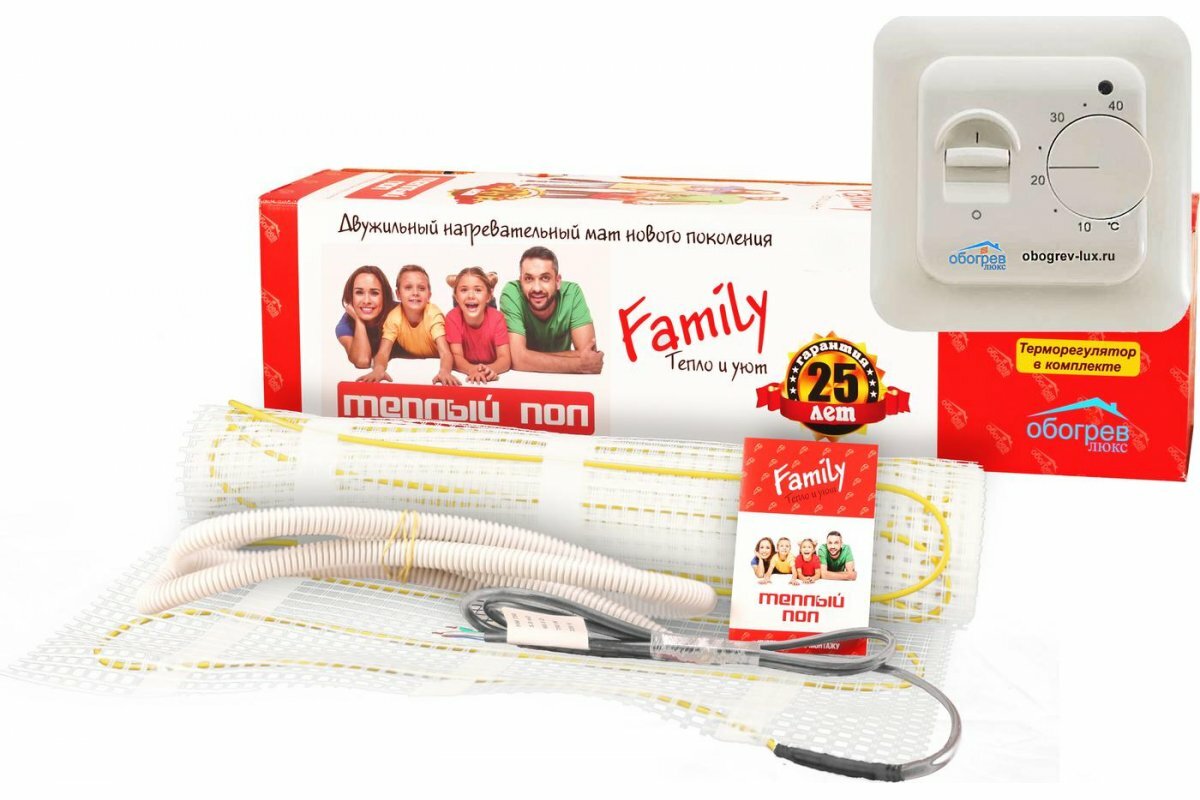 Теплый пол Family 4м2/600Вт в комплекте с терморегулятором