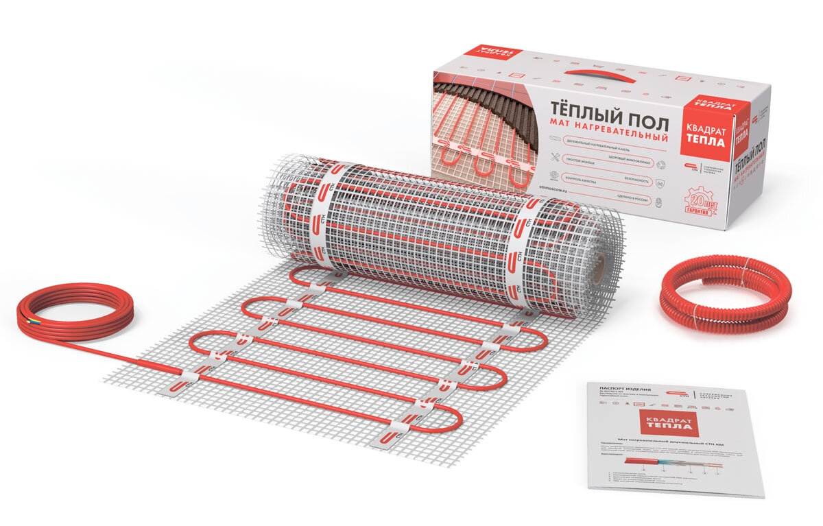 Нагревательный мат СТН Квадрат тепла КМ-1500-10.0 150 Вт/м2 10 м2 1500 Вт механический терморегулятор в подарок