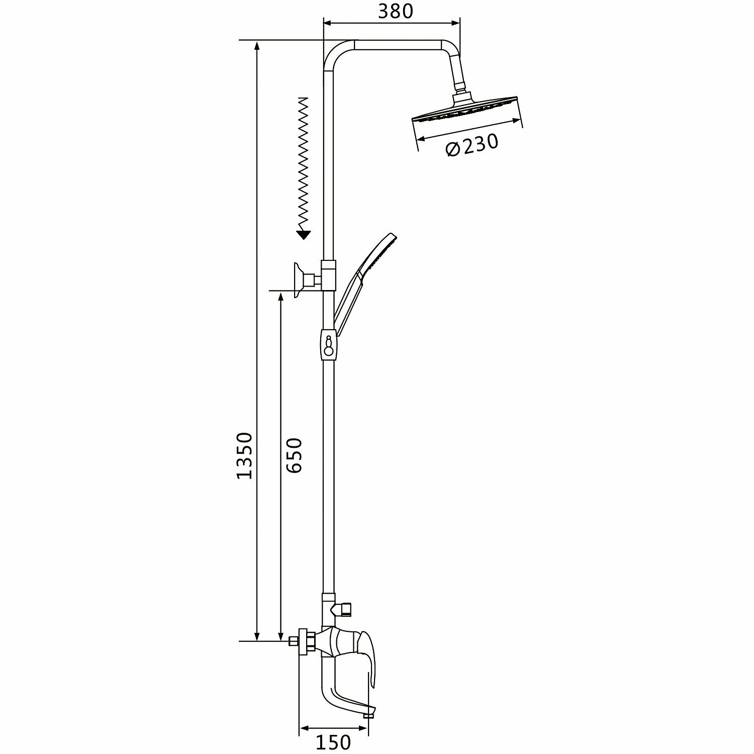| Особенности | S-образные эксцентрики / аэратор / держатель душевой лейки / регулируемый верхний душ / защита от скручивания / поворотный излив |