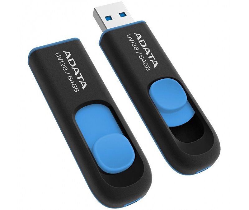 Внешний накопитель 64GB USB Drive ADATA USB 3.1 UV128 черно-синяя выдвижная AUV128-64G-RBE
