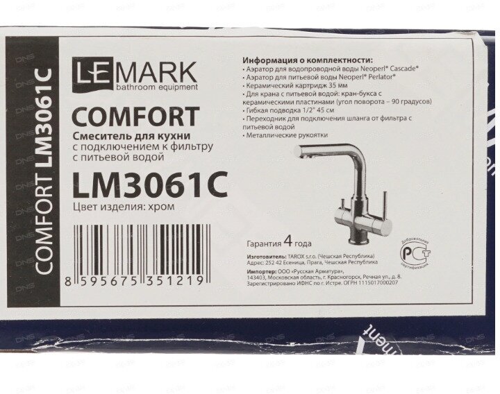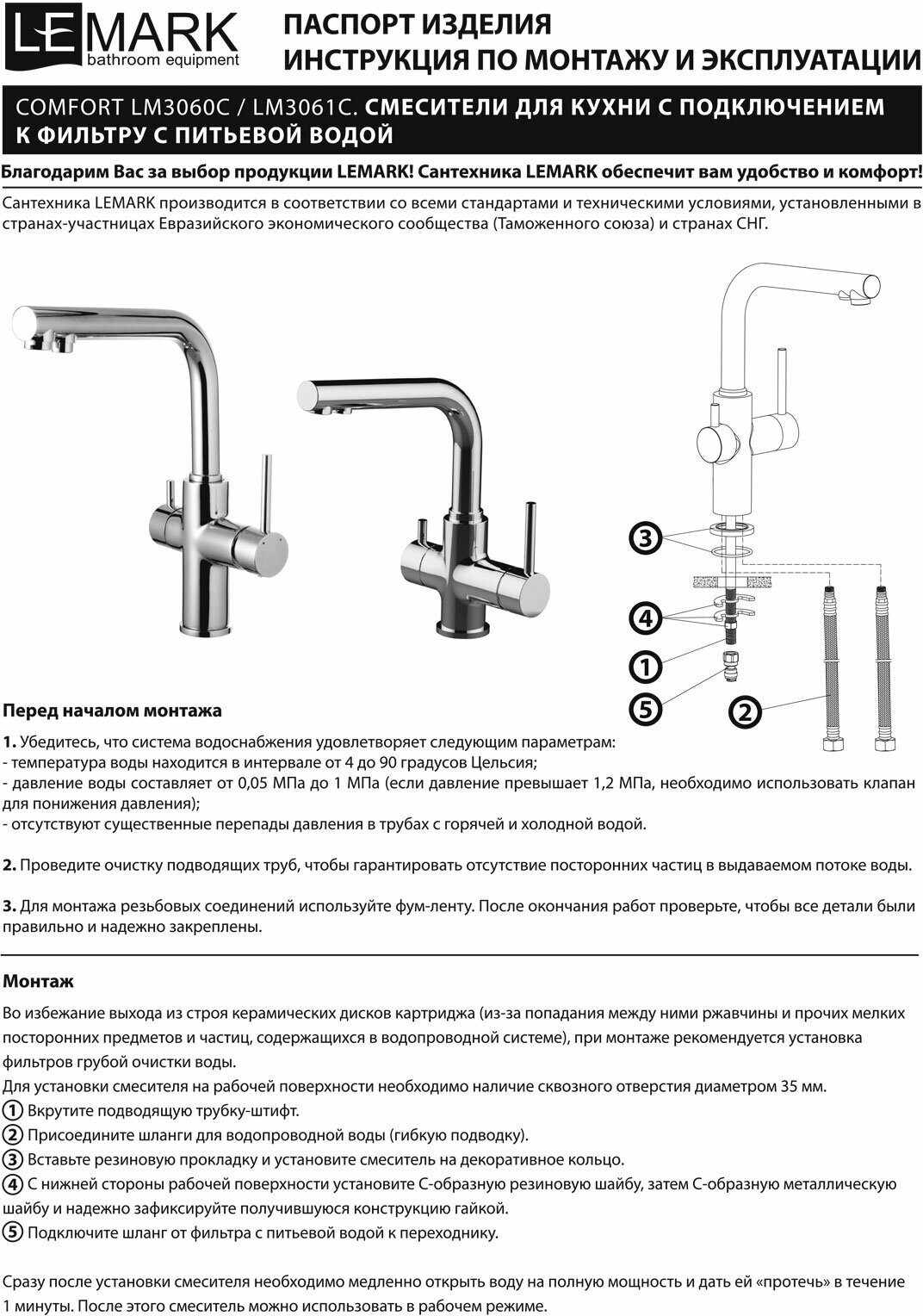 Lemark Смеситель Comfort Lm3061c для кухни с подключением к фильтру с питьевой водой .