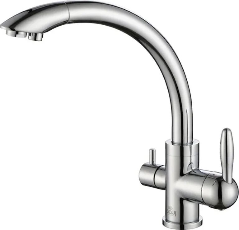 Смеситель для кухни Paulmark ESSEN, подключение к фильтру питьевой воды с отдельным каналом и выпуском, поворотный излив, латунь, на мойку / столешницу, хром, Es213001-CR