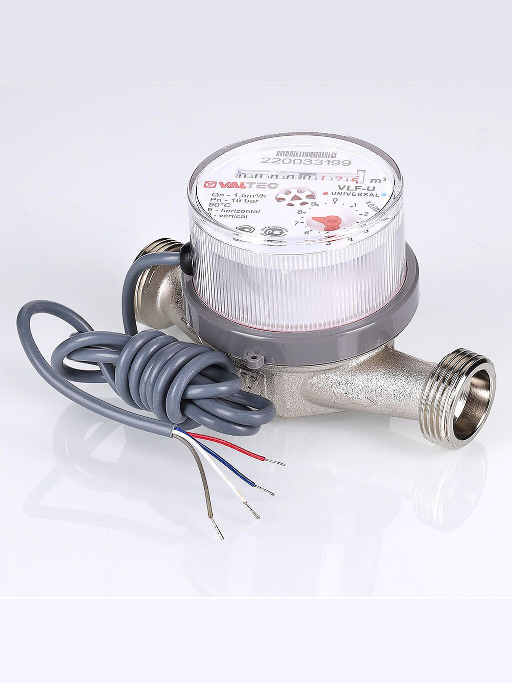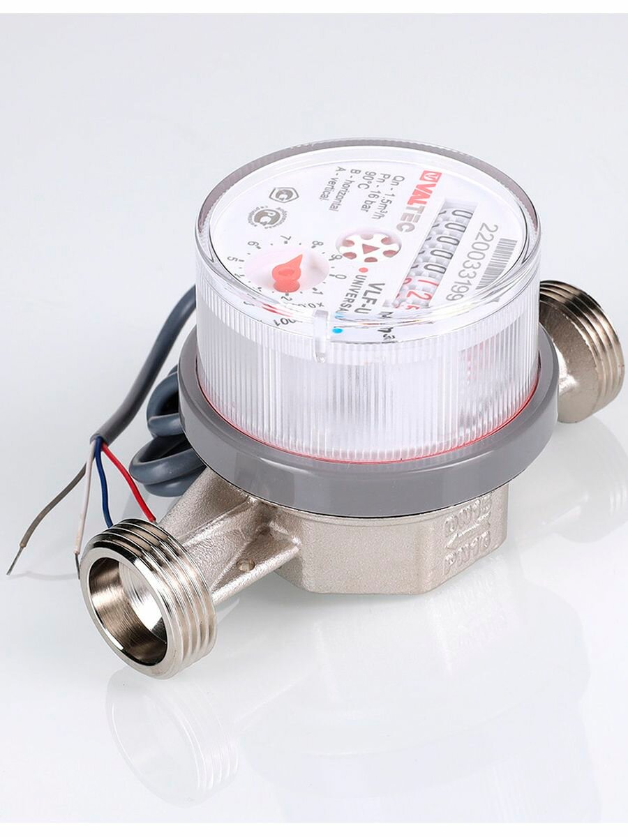 Водосчетчик 1/2" универсальный импульсный VALTEC, длина 110 мм (норма расхода 1.5) / Счетчик ДУ15 крыльчатый для горячей и холодной воды с дистанционным считыванием, без полусгонов VLF-15U-IL.110