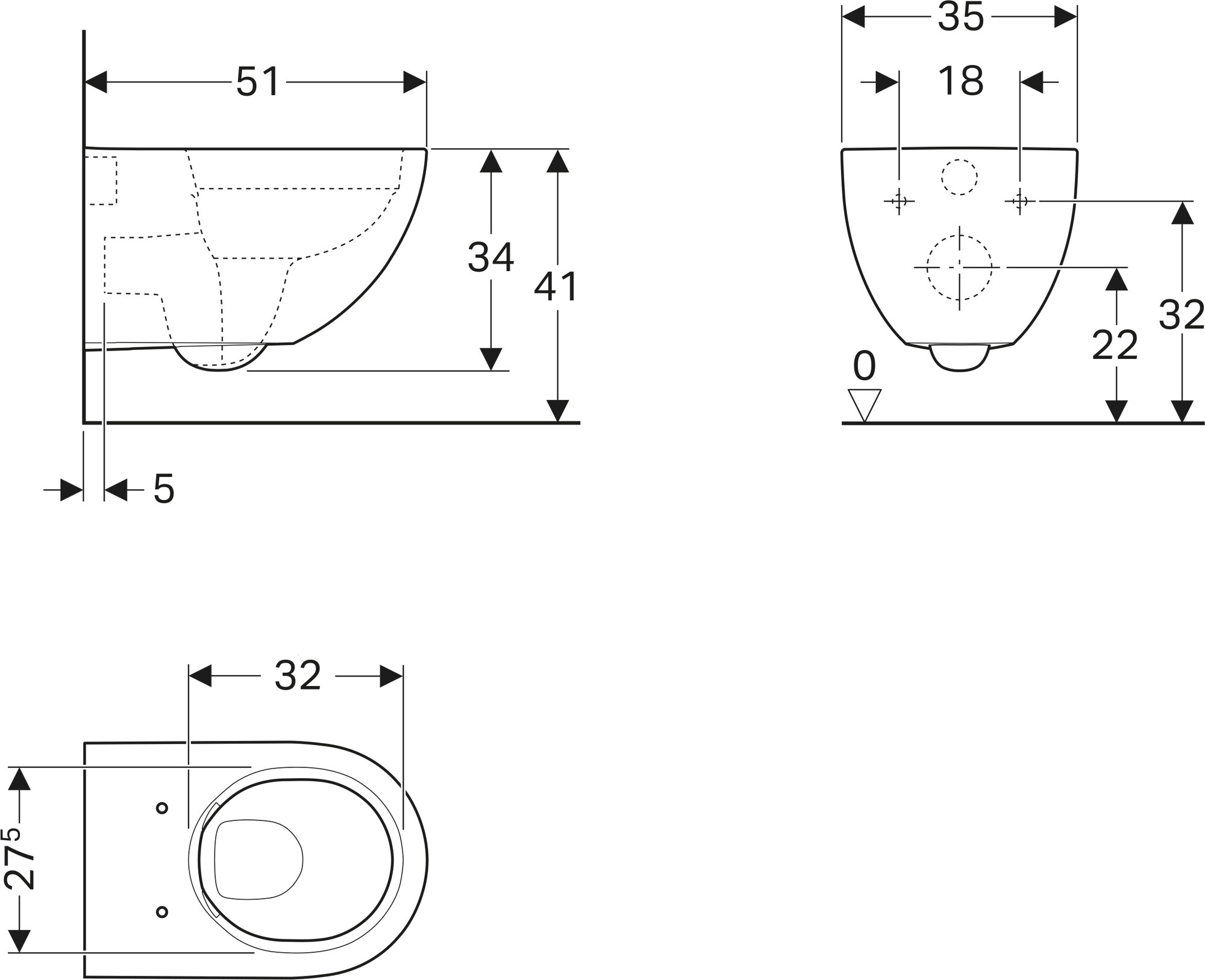 Geberit 500.600.01.2 ACANTO Унитаз подвесной (чаша) 35х51 см, безободковый, белый