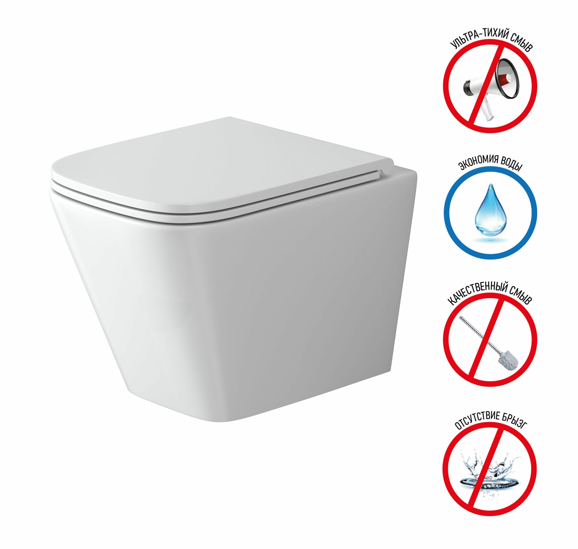 Купить Унитаз подвесной Grossman GR-4479SQ (485х340х355) безободковый, белый с тонкой крышкой, микролифт, смыв торнадо,1 место