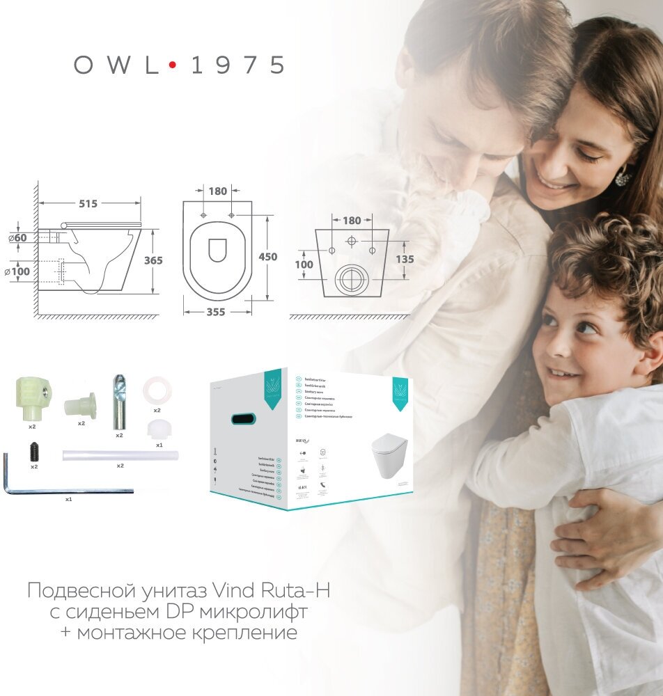 OWL Унитаз подвесной Vind Ruta-H с сиденьем микролифт OWLT190304 OWL