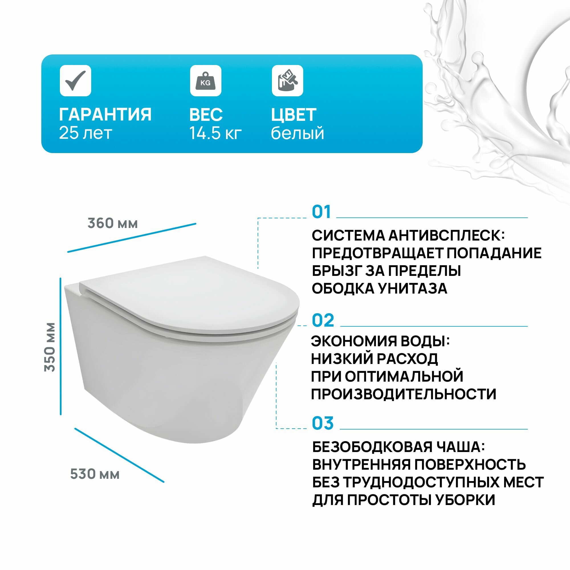 | Минусы: | При мужском использовании достаточно сильно брызгает ввиду особенности рельефа дна) |