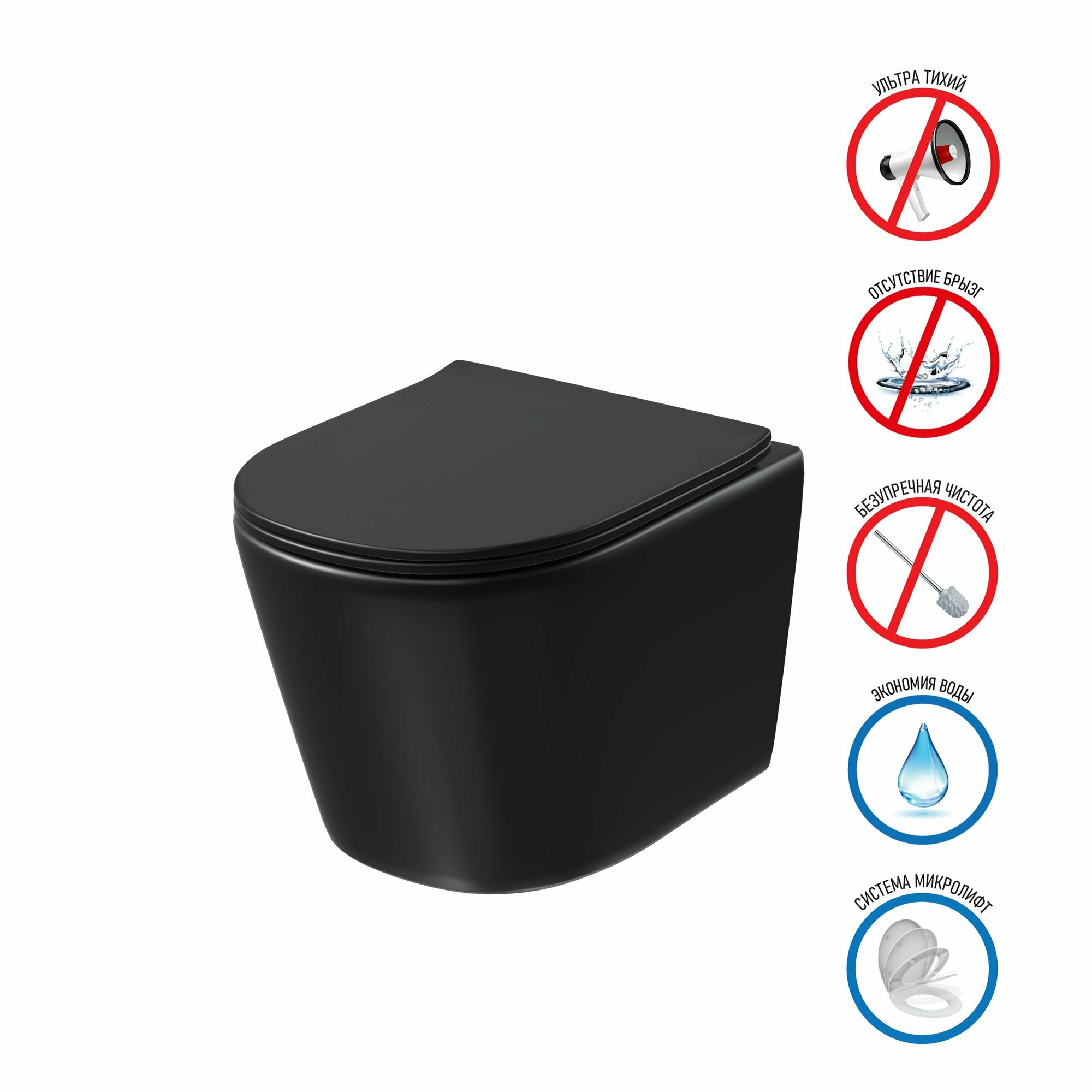 Купить Унитаз подвесной Grossman GR-4477BMSQ безободковый, с сиденьем микролифт, черный матовый