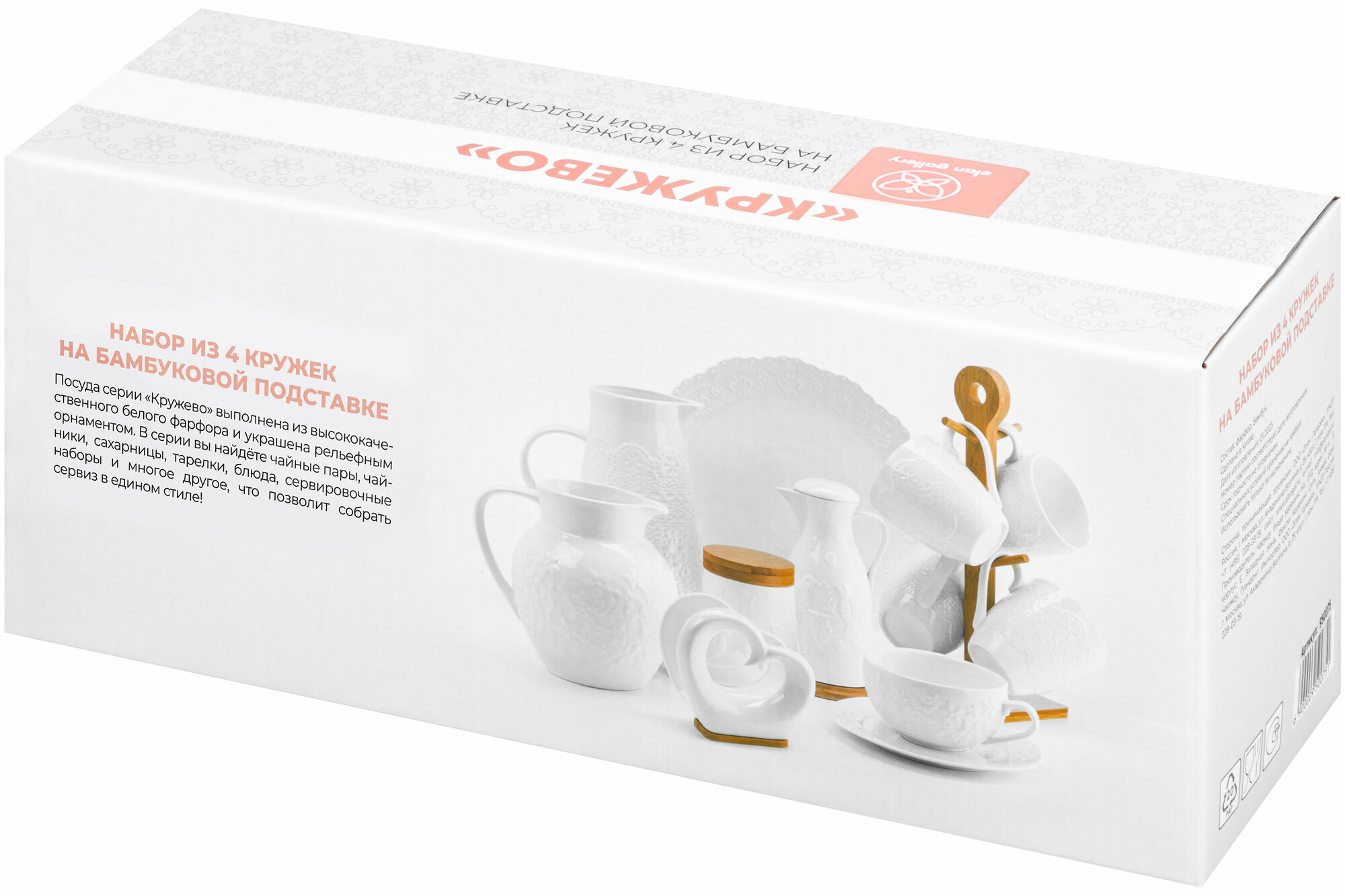 Набор из 4х кружек Elan Gallery "Кружево" 950075 на деревянной подставке с ручкой, 350мл интересное: