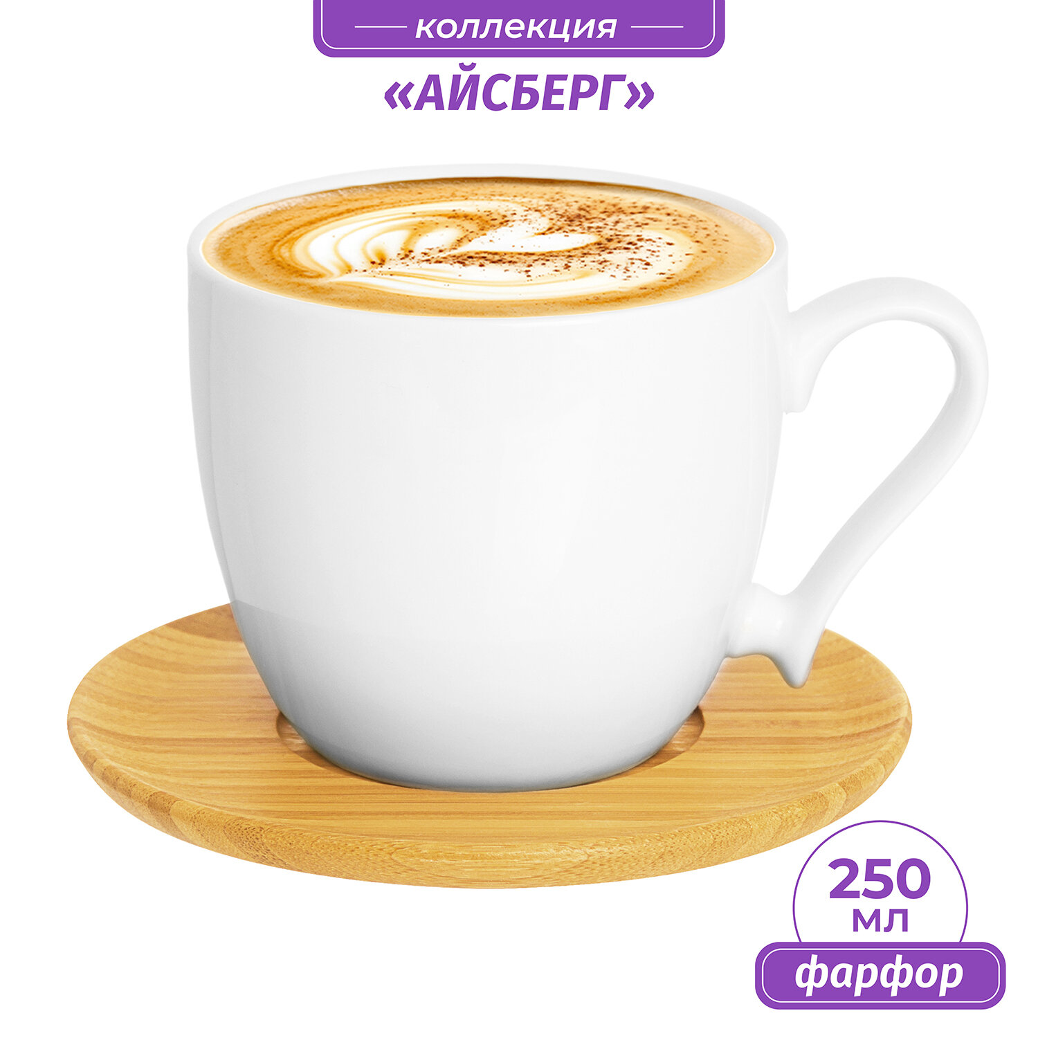 Чашка / кружка для капучино и кофе латте 250 мл 11х8,3х7,5 см Elan Gallery Айсберг на деревянной подставке