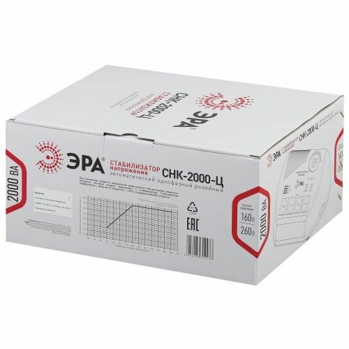 Компактный стабилизатор напряжения ЭРА СНК-2000-Ц ц.д., 160-260В/220В, 2000ВА Б0031075
