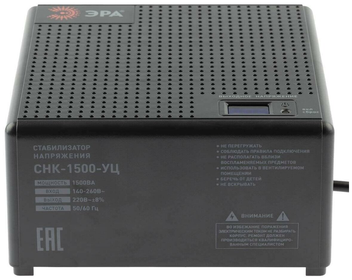 Стабилизатор напряжения однофазный ЭРА СНК-1000-УЦ черный 1000 ВА 1000 Вт 190 мм 235 мм 110 мм 2.8 кг