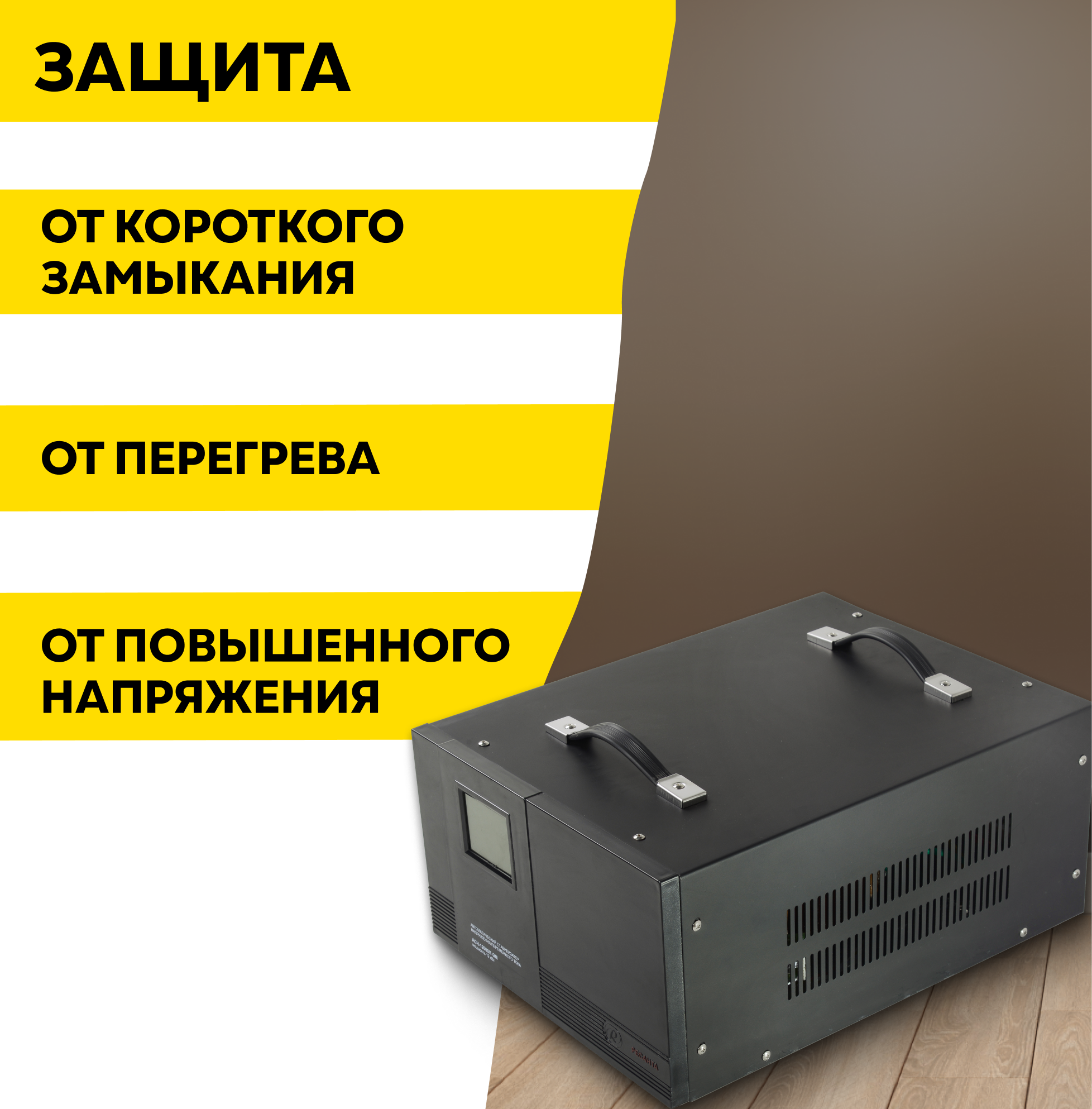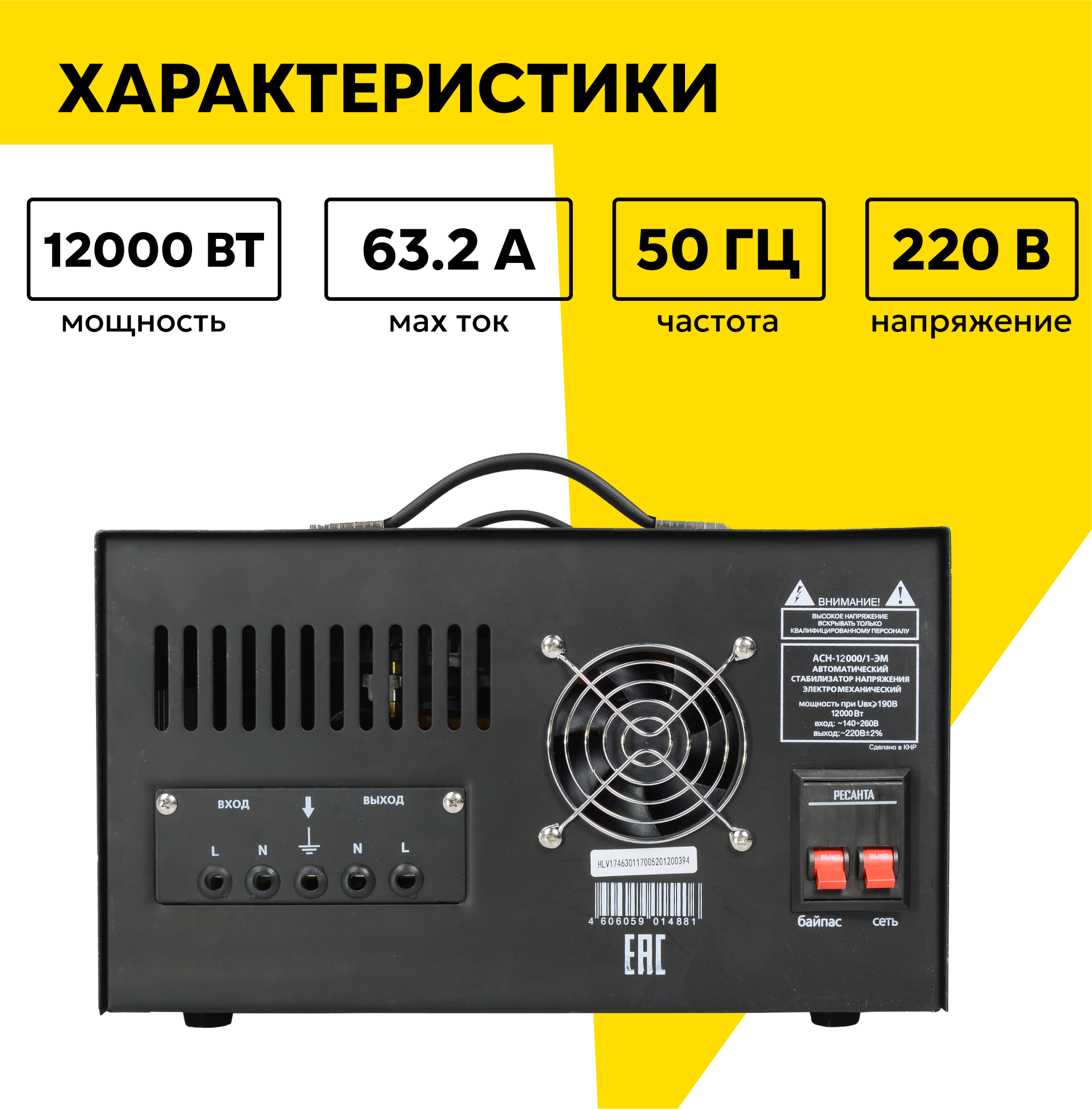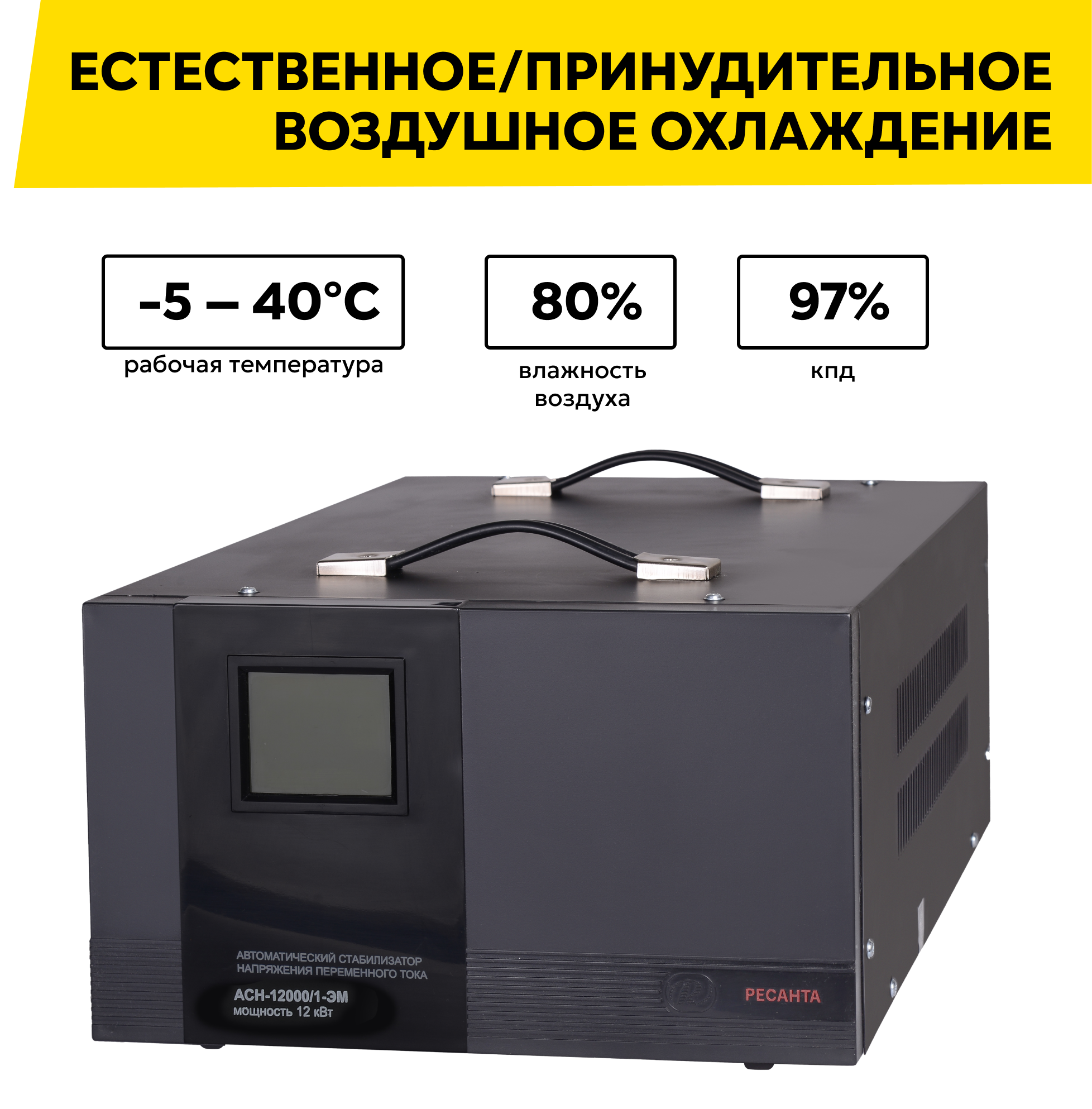 Стабилизатор напряжения однофазный РЕСАНТА ACH-12000/1-ЭМ черный 12000 Вт 400 мм 323 мм 183 мм 26.7 кг
