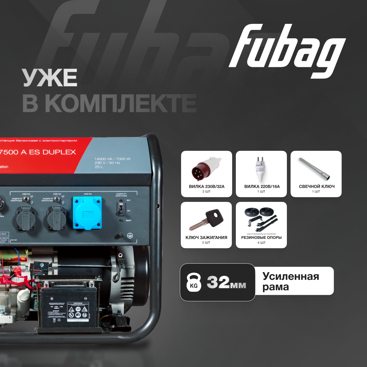 FUBAG электростанция бензиновая с электростартером и коннектором автоматики bs 7500 a es duplex, 641087