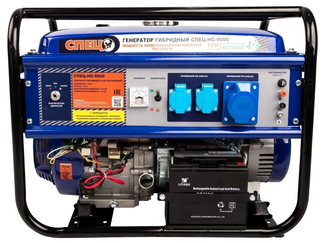 Генератор Спец HG-9000, газо-бензиновый, 8000Вт, 1 фаза, 220В, 3 розетки интересное: