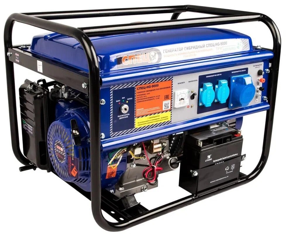 Купить Генератор Спец HG-9000, газо-бензиновый, 8000Вт, 1 фаза, 220В, 3 розетки