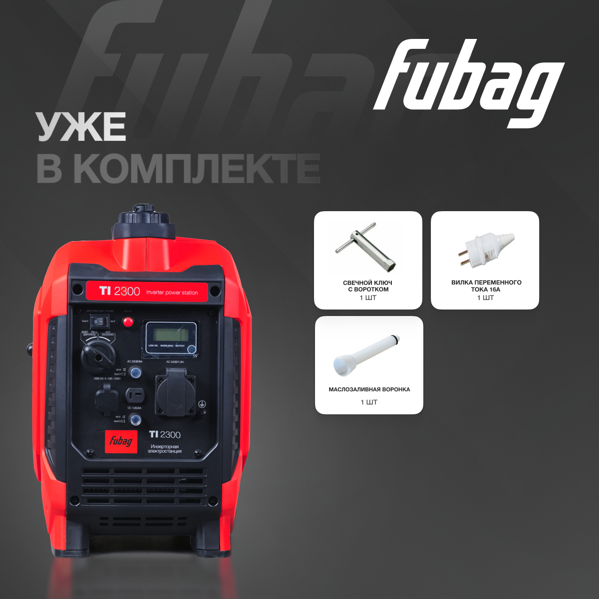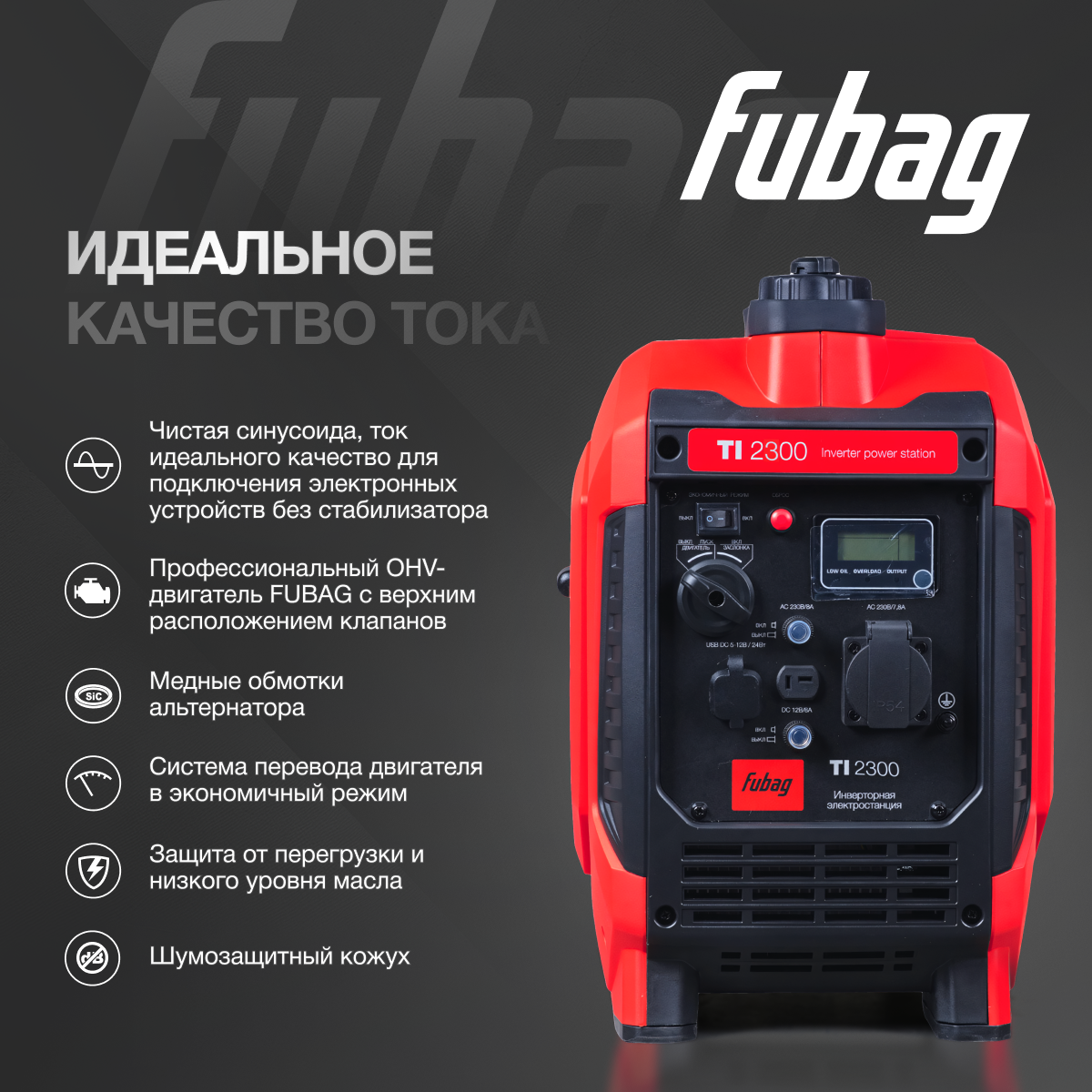 Генератор инверторный цифровой FUBAG TI 2300, 2,3 кВА, 230 В