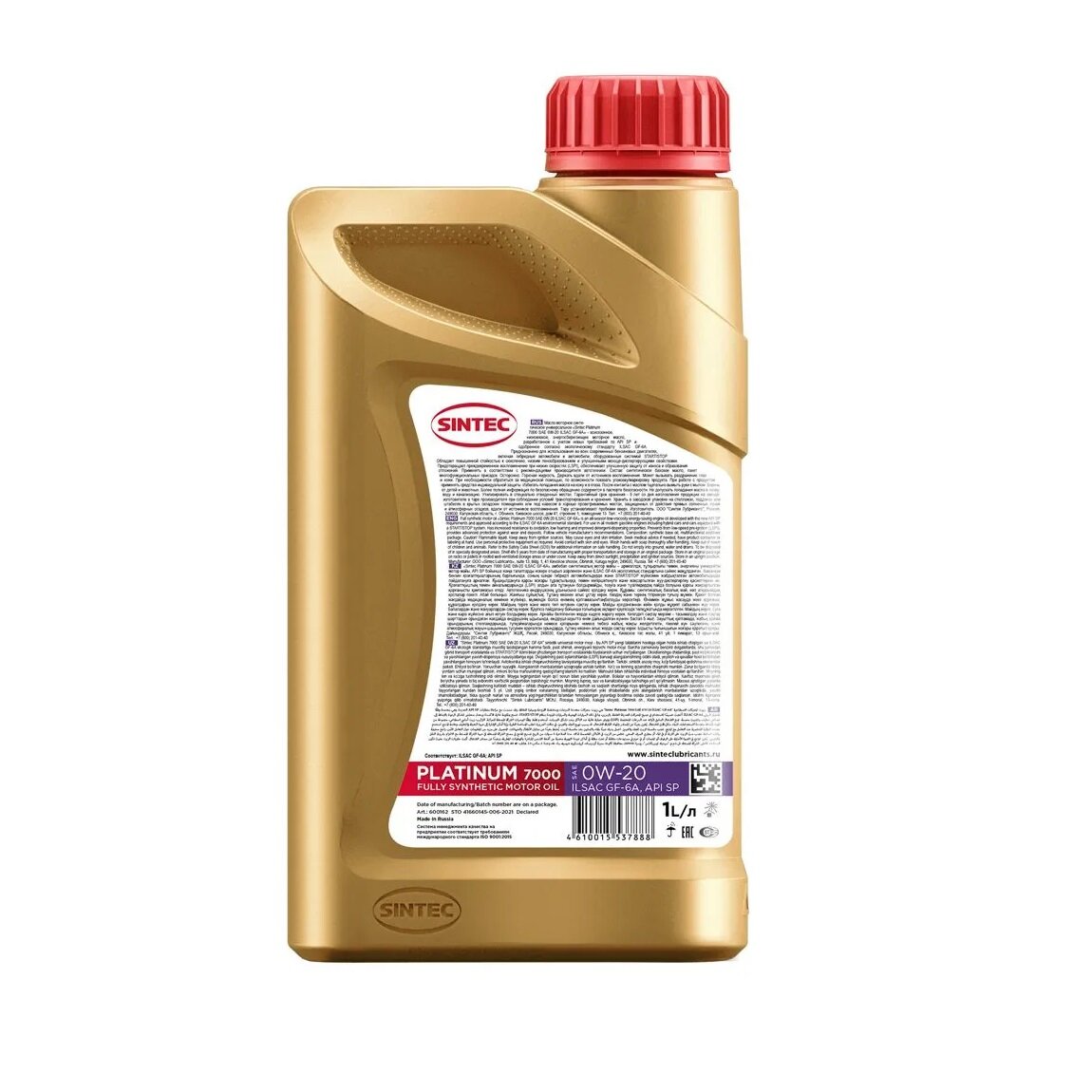 Синтетическое моторное масло SINTEC Platinum SAE 0W-20 ILSAC GF-6 API SP, 4 л, 3.578 кг, 1 шт