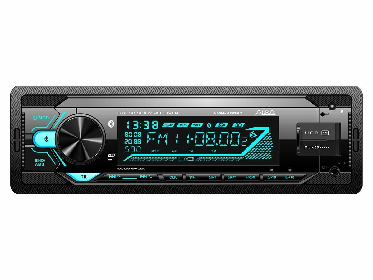 Автомагнитола 1DIN. AURA AMH-450BT /мультицвет/USB/SD/FM/Bluetooth