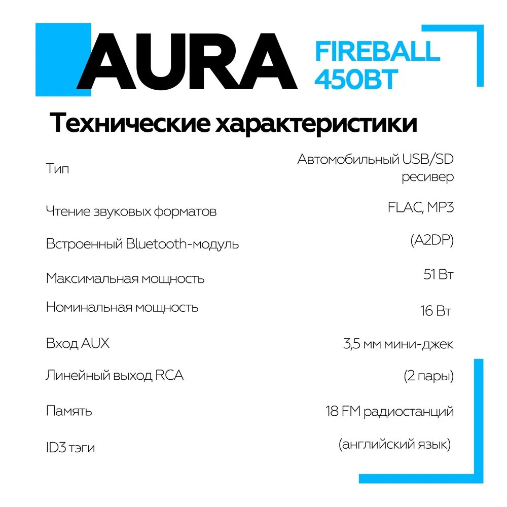 Купить Магнитола Aura FIREBALL-450BT USB-ресивер Магнитола с блютуз