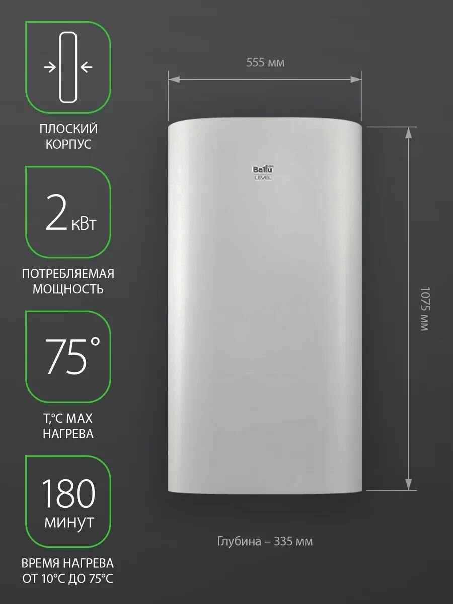 Водонагреватель накопительный электрический Ballu BWH/S 100 Level PRO, 100 л, 2000 Вт