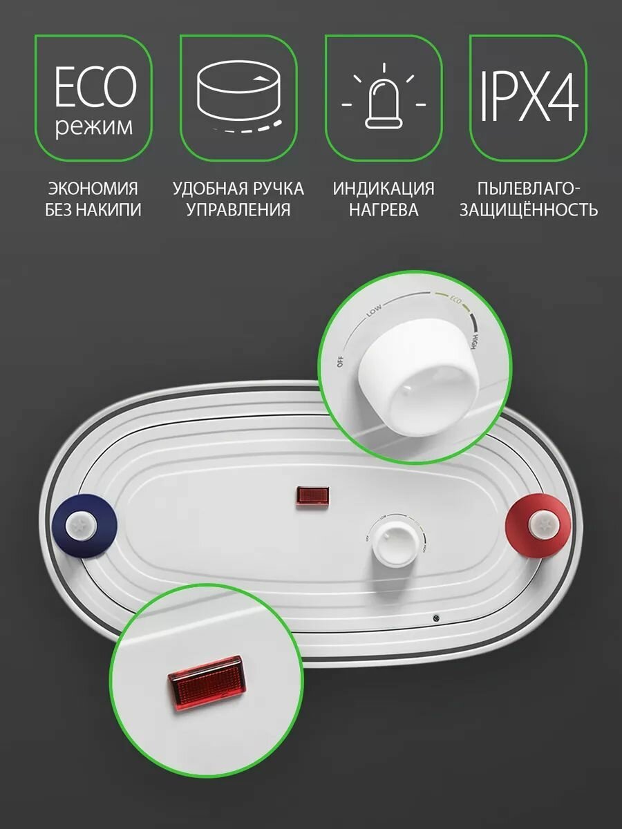 | Отзыв: | Выбрали бойлер побольше, т.к. семья увеличилась. Корпус плоский, не выглядит громоздким. Управление понятное, механическое. Воду греем и до максимальной температуры и до минимальной, но чаще в режиме есо. Температура в этом режиме устраивает в любое время года, да и накипи в этом режиме мало. Тэн 2 кВт и вода нагревается быстро. |
