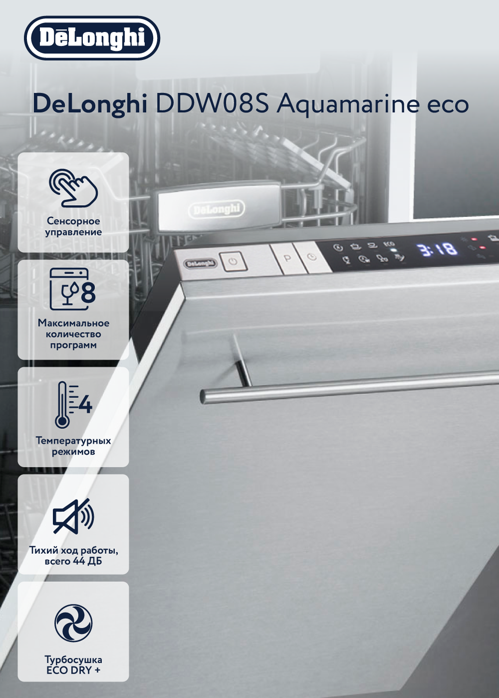 СохранитьВстраиваемая посудомоечная машина 45 см DeLonghi DDW 08S Aquamarine eco, инверторный мотор, 10 комплектов, Aqua Stop, 3 корзины, сенсорное управление, встроенная посудомойка 45см интересное: