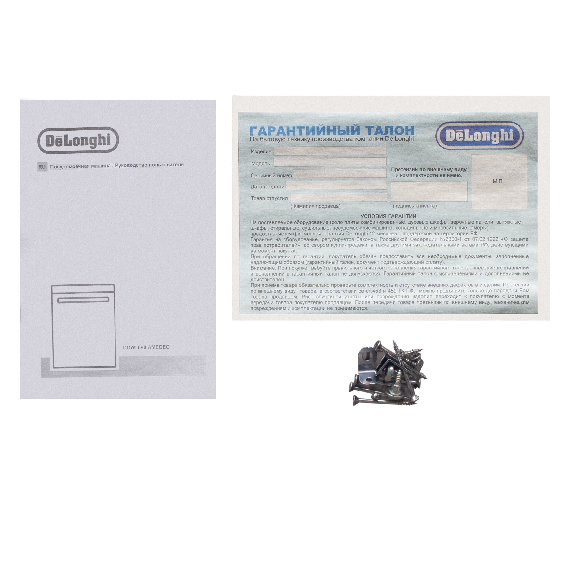 Встраиваемая посудомоечная машина DeLonghi DDW 06S Supreme Nova, 45 см, 10 комплектов, Aqua Stop, 3 корзины, луч на полу