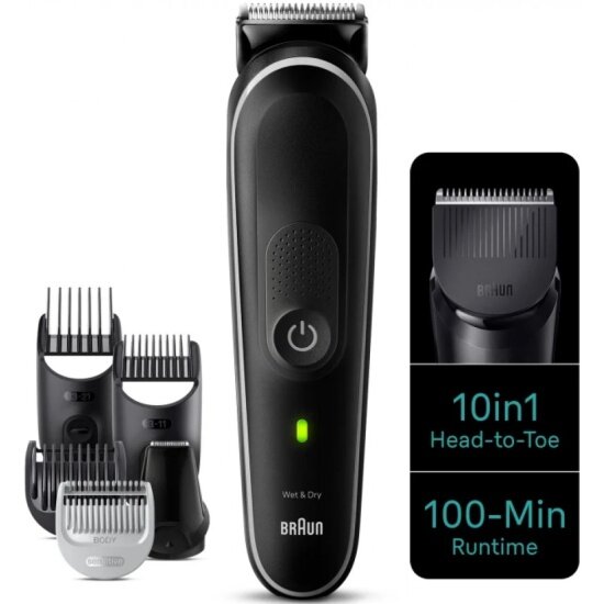 Триммер Braun MGK5420, 10 функций в 1, для волос, головы, лица, тела, серый, черный