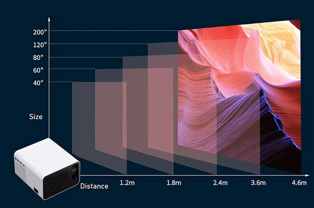 На расстоянии проектора 284 см от стены до полотна экрана, выдает картинку размером 94 дюйма, это 238 см по диагонали, 207 см в ширину и 116 см в высоту! Для обычной комнаты вполне хватает! Пересмотрел десятки обзоров на проектора и даже дороже проектора с ним не сравняться! Дорого не значит лучше и качественней! Однозначно рекомендую данный проектор! |