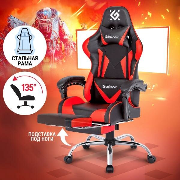 Кресло игровое DEFENDER Pilot Черный/Красный,полиуретан,60мм
