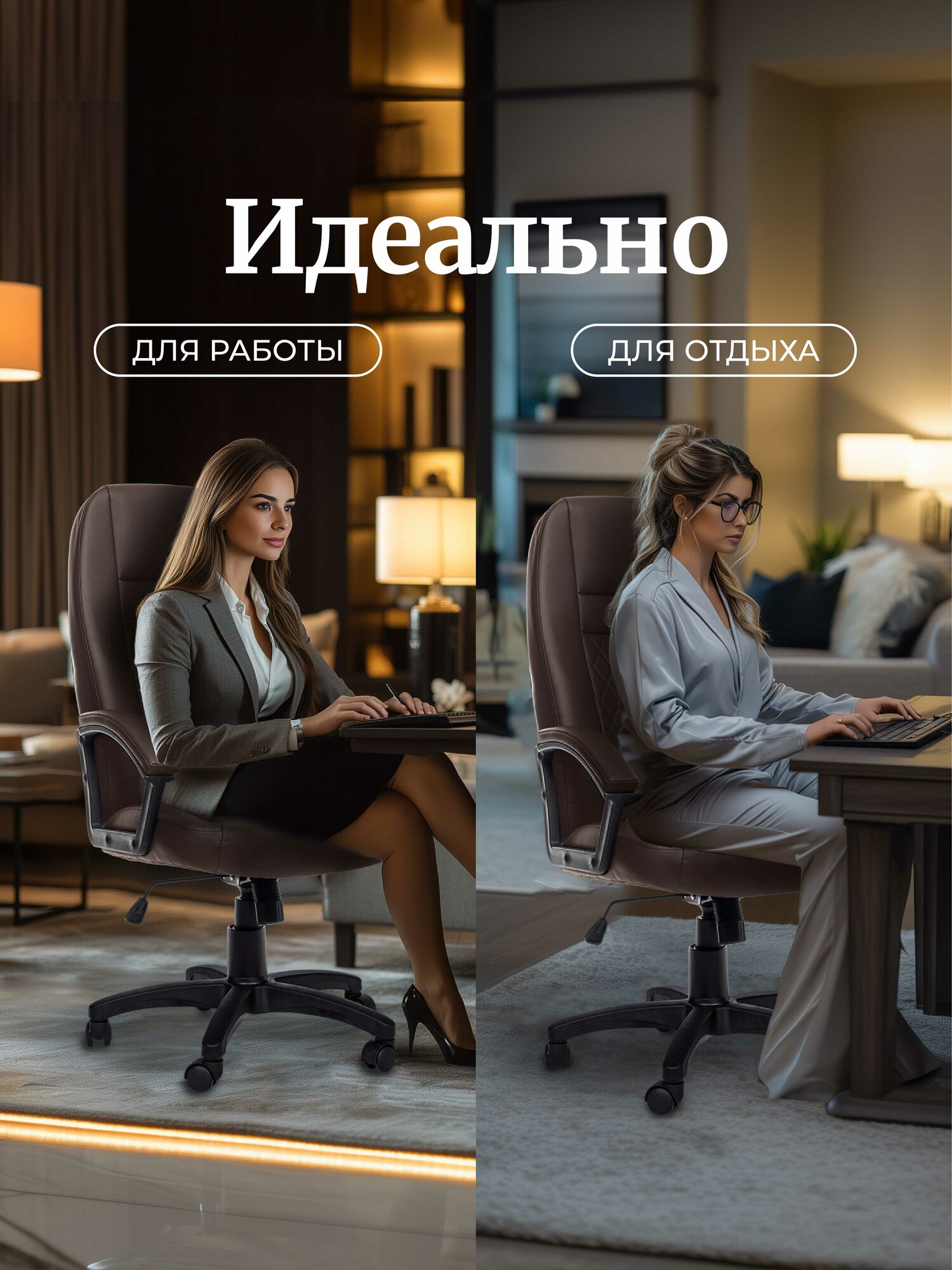 Компьютерное офисное кресло руководителя РосКресла Бостон (коричневый/экокожа) на колесиках