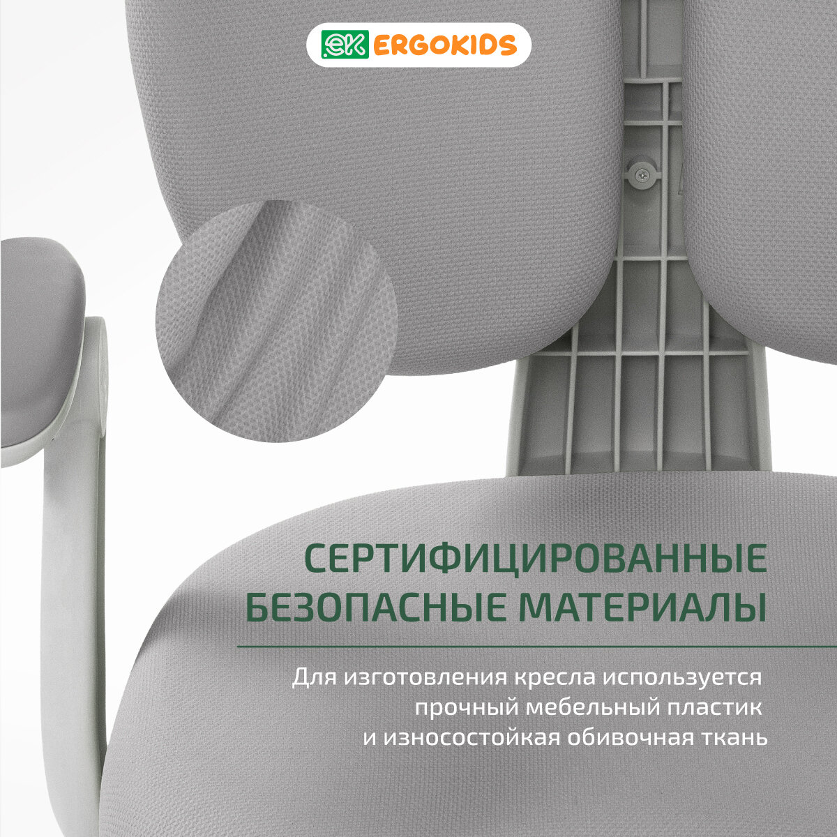 Детское кресло ErgoKids Y-507 KG Armrests (Y-507 ARM/KG) (с подлокотниками) обивка серая однотонная