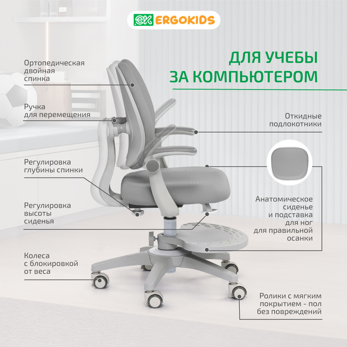 СохранитьРастущее детское кресло ортопедическое с подлокотниками Ergokids Sprint Duo Plus Y-412 серое интересное: