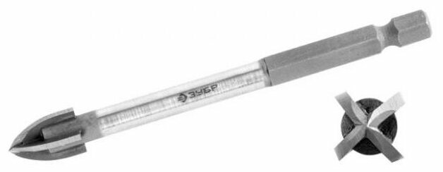 Зубр Сверло по кафелю, керамике, стеклу, с четырьмя режущими лезвиями, шестигранный хвостовик, 5 мм, "профессионал" 29845-05 29845-05 z01